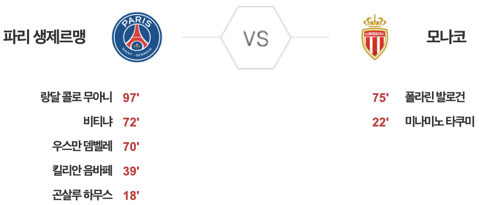 파리 생제르맹 5 vs 2 모나코