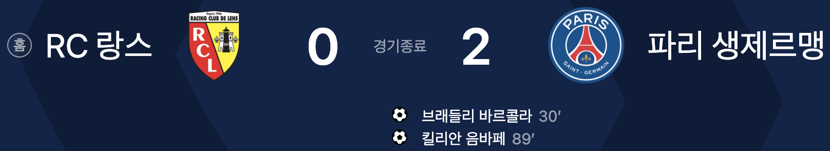 RC 랑스 0 vs 2 파리 생제르맹