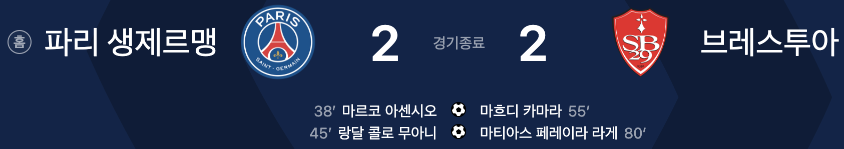 파리 생제르맹 2 vs 2 브레스투아