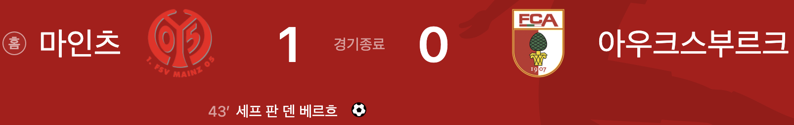 마인츠 1 vs 0 아우크스부르크