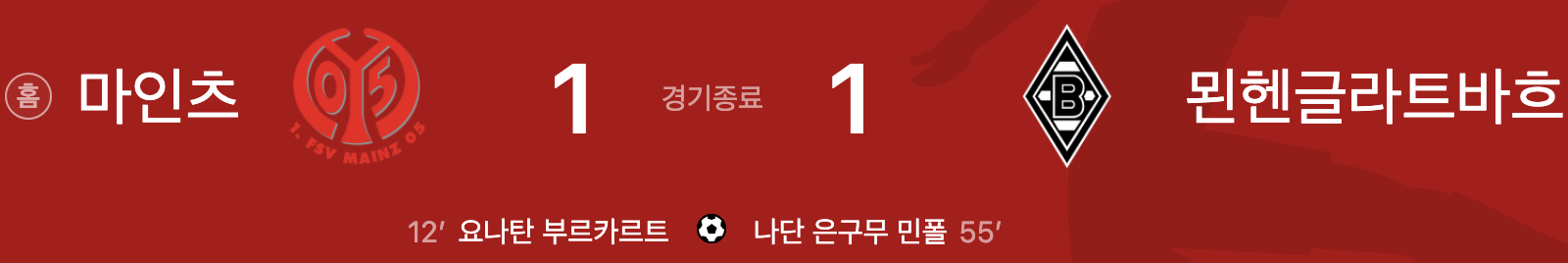 마인츠 1 vs 1 묀헨글라트바흐