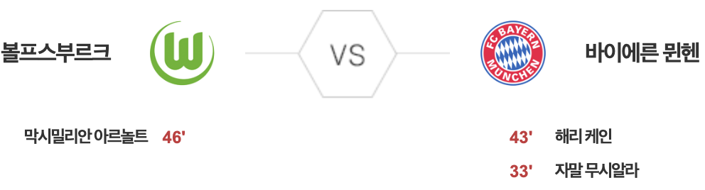 볼프스부르크 1 vs 2 바이에른 뮌헨