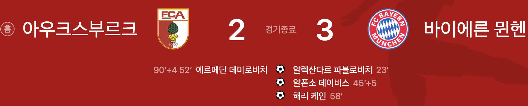 아우크스부르크 2 vs 3 바이에른 뮌헨
