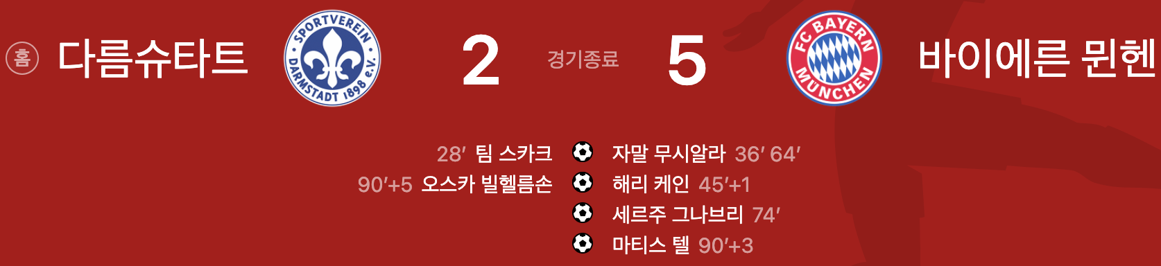다름슈타트 2 vs 5 바이에른 뮌헨