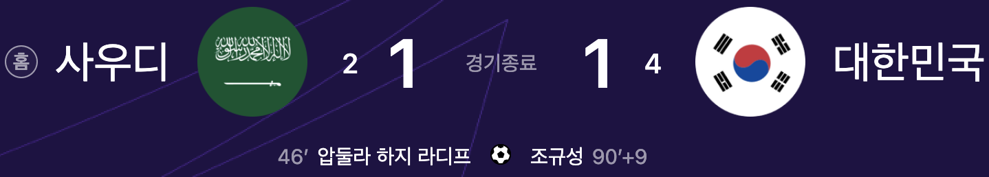- 교체 투입 : 황희찬(정우영), 조규성(이재성), 박용우(정승현), 홍현석(황인범)