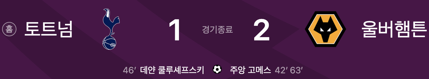 토트넘 1 vs 2 울버햄튼