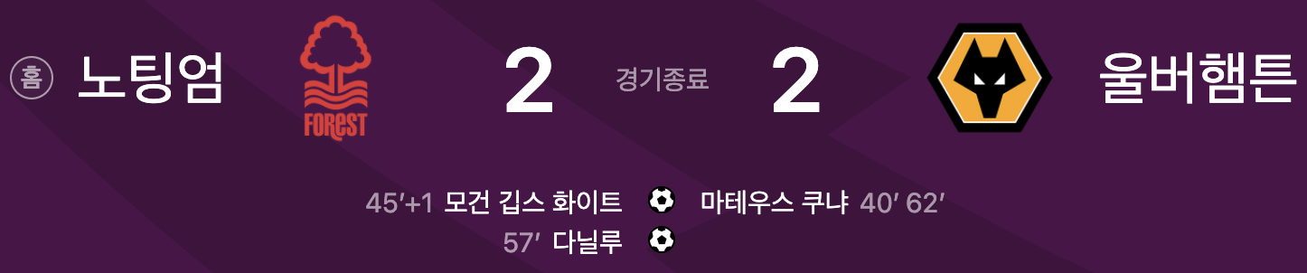 노팅엄 2 vs 2 울버햄튼