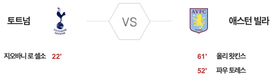 토트넘 1 vs 2 애스턴 빌라