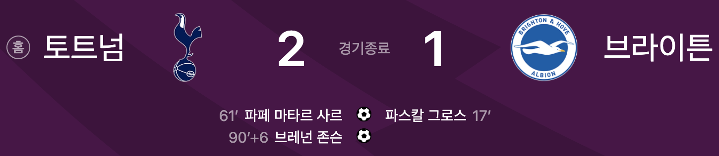 | [프리미어리그] 2023/2024 토트넘 손흥민 경기 22R(2024.02.01) (0) | 2024.02.11 |